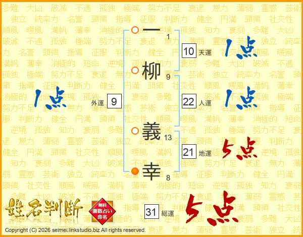 一柳義幸さんの総運は31画の5点!