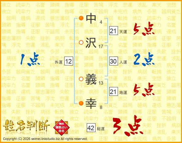 中沢義幸さんの天運は21画の5点!