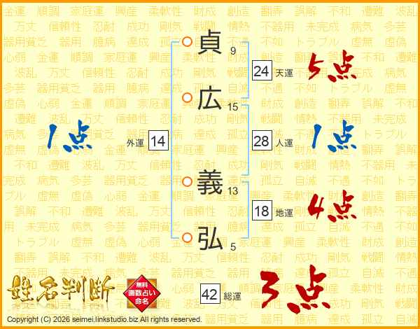 貞広義弘さんの総運は42画の3点!