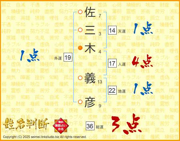 佐三木義彦さんの人運は17画の4点!