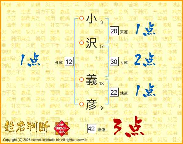 小沢義彦さんの総運は42画の3点!