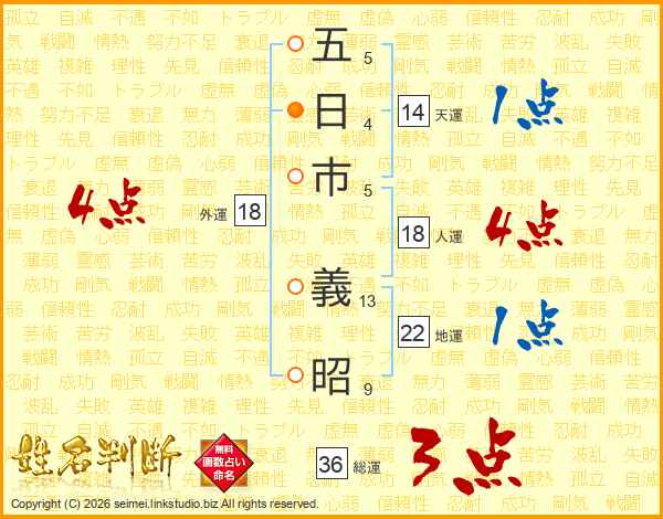 五日市義昭さんの総運は36画の3点!