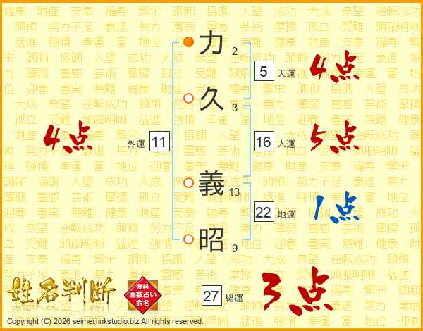 力(2画)久(3画) 義(13画)昭(9画)