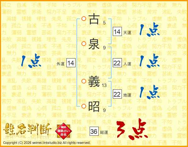 古泉義昭さんの総運は36画の3点!