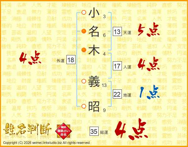 小(3画)名(6画)木(4画) 義(13画)昭(9画)