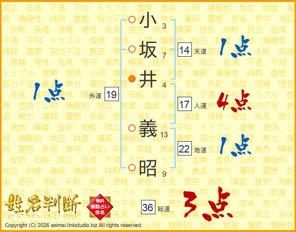 小(3画)坂(7画)井(4画) 義(13画)昭(9画)
