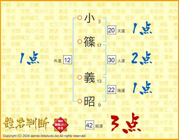 小篠義昭さんの天運は20画の1点!