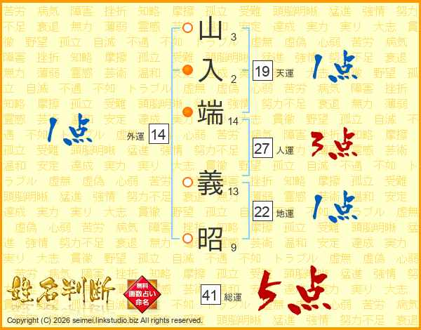 山(3画)入(2画)端(14画) 義(13画)昭(9画)