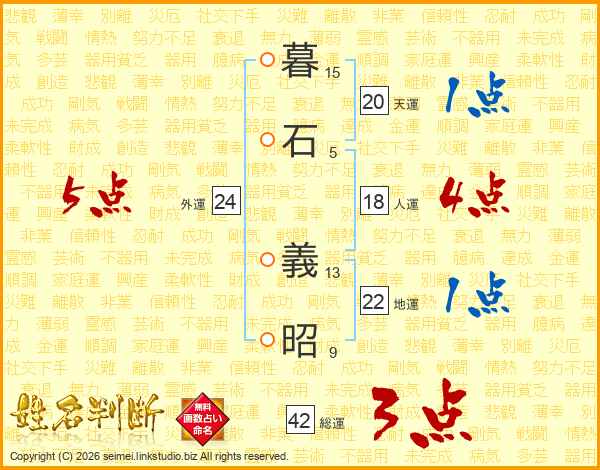暮(15画)石(5画) 義(13画)昭(9画)