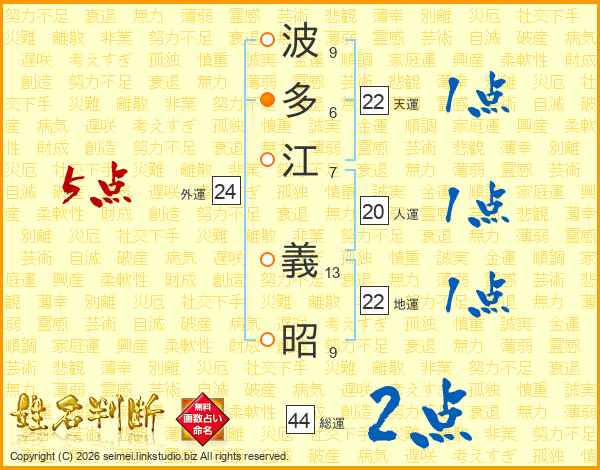 波(9画)多(6画)江(7画) 義(13画)昭(9画)