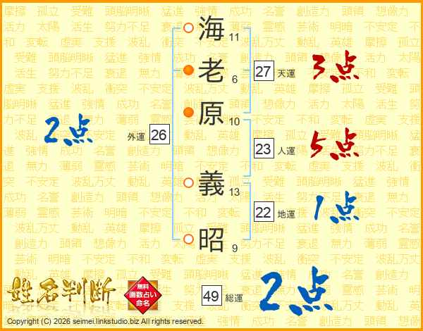 海老原義昭さんの天運は27画の3点!