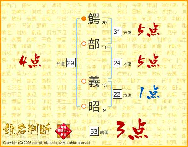鰐部義昭さんの総運は53画の3点!