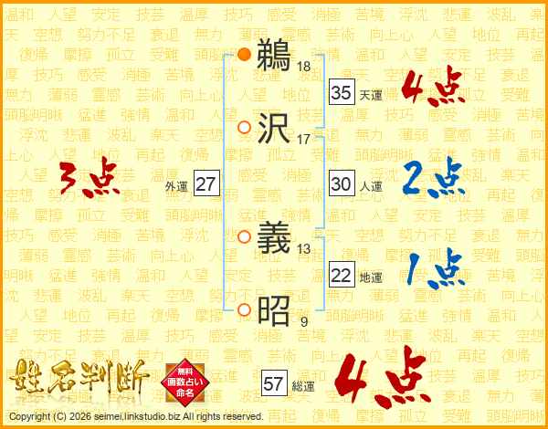 鵜沢義昭さんの総運は57画の4点!