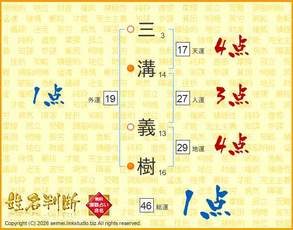 三溝義樹さんの天運は17画の4点!