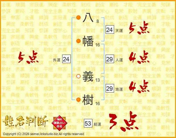 八幡義樹さんの総運は53画の3点!