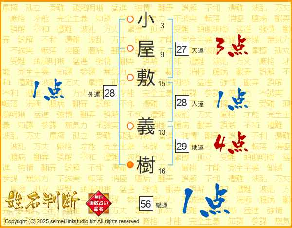 小屋敷義樹さんの総運は56画の1点!