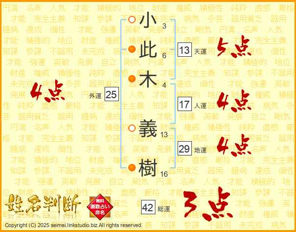 小(3画)此(6画)木(4画) 義(13画)樹(16画)