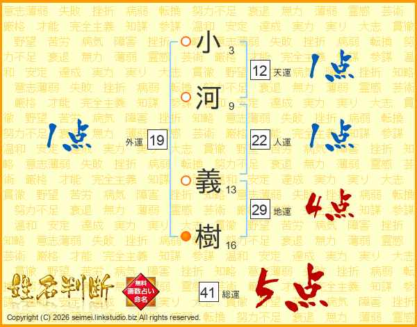 小河義樹さんの総運は41画の5点!