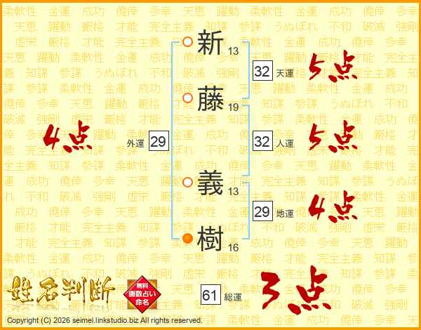 新(13画)藤(19画) 義(13画)樹(16画)