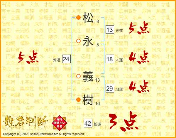 松(8画)永(5画) 義(13画)樹(16画)