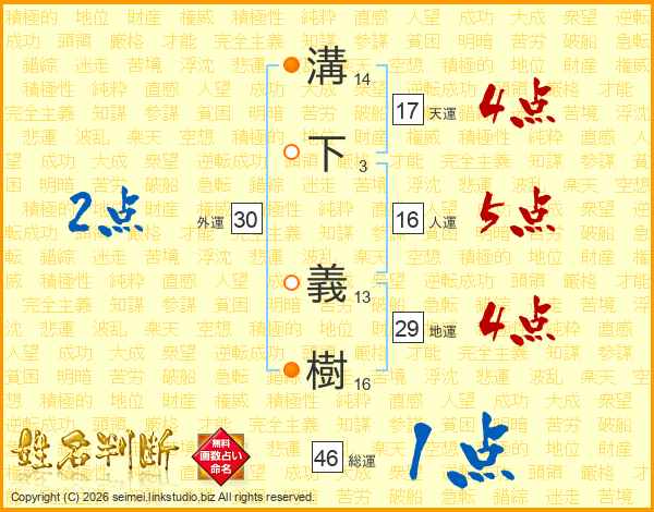 溝下義樹さんの天運は17画の4点!