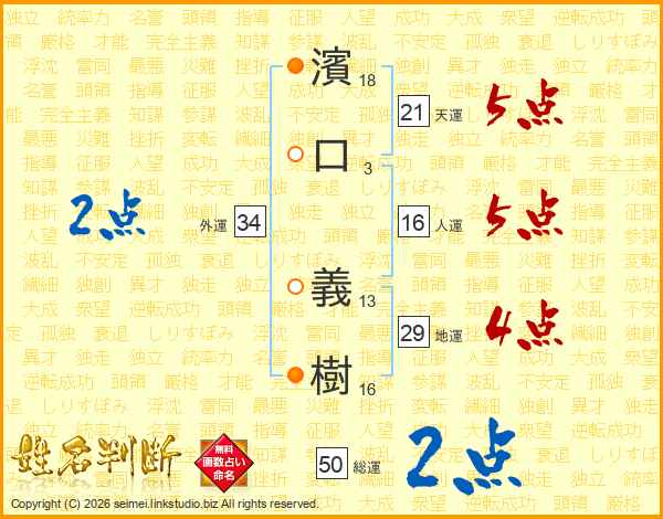 濱口義樹さんの天運は21画の5点!