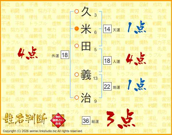 久米田義治さんの総運は36画の3点!
