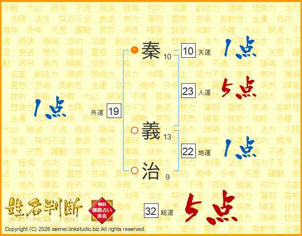 秦義治さんの総運は32画の5点!
