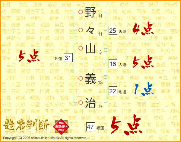 野々山義治さんの総運は47画の5点!