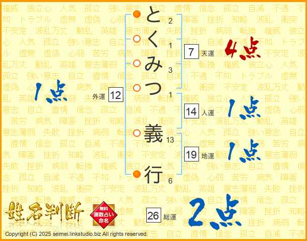 とくみつ義行さんの総運は26画の2点!