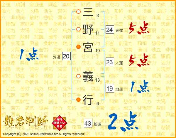 三(3画)野(11画)宮(10画) 義(13画)行(6画)