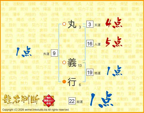 丸義行さんの総運は22画の1点!