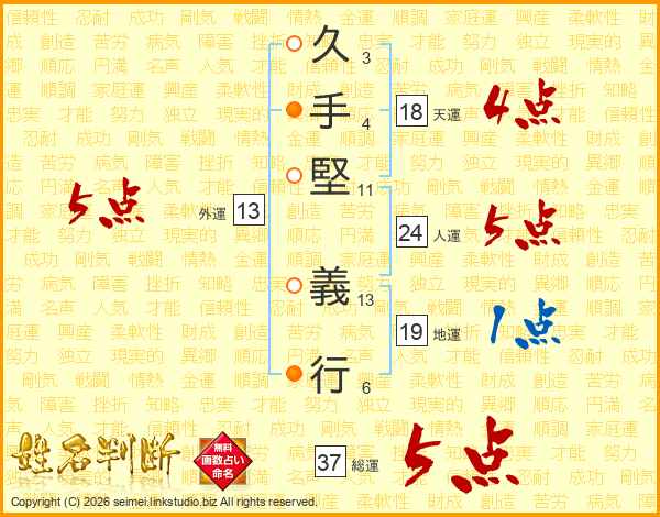 久手堅義行さんの人運は24画の5点!