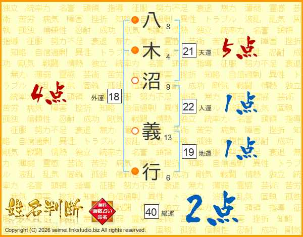 八木沼義行さんの総運は40画の2点!