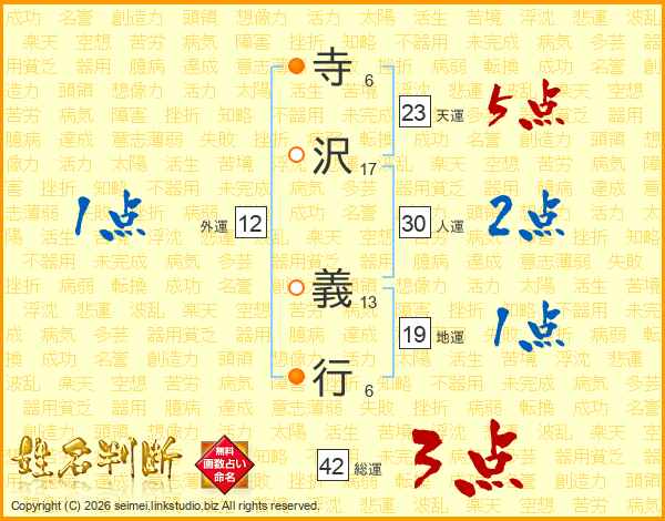 寺(6画)沢(17画) 義(13画)行(6画)