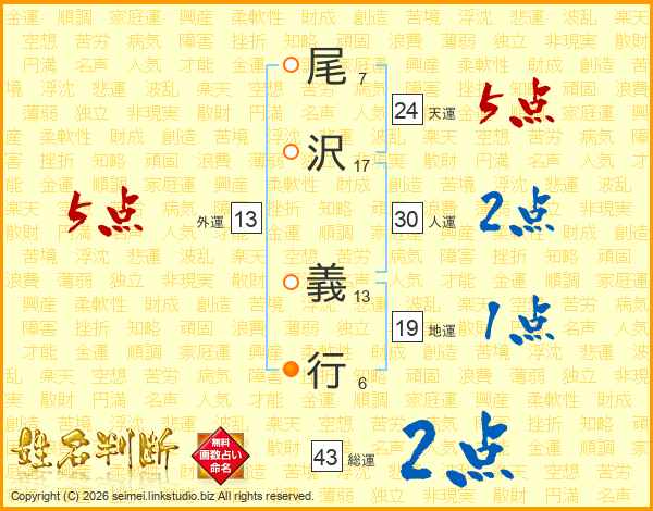 尾沢義行さんの天運は24画の5点!