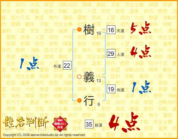 樹義行さんの総運は35画の4点!