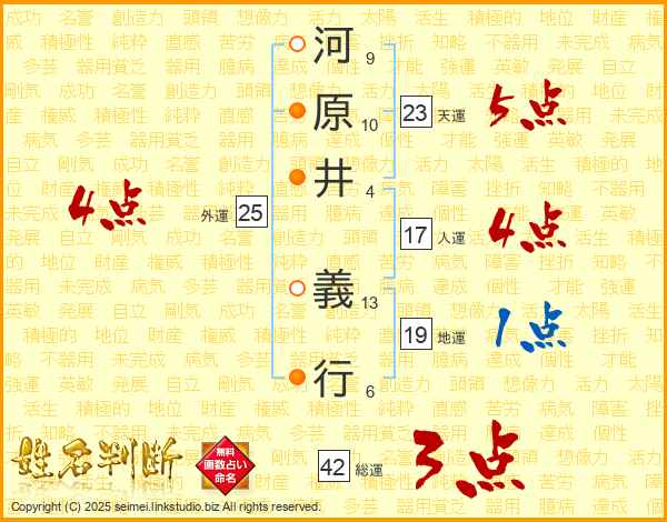 河(9画)原(10画)井(4画) 義(13画)行(6画)