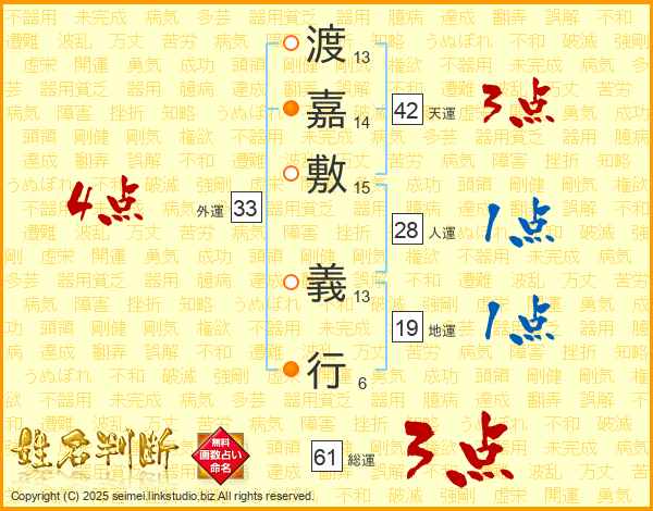 渡嘉敷義行さんの外運は33画の4点!