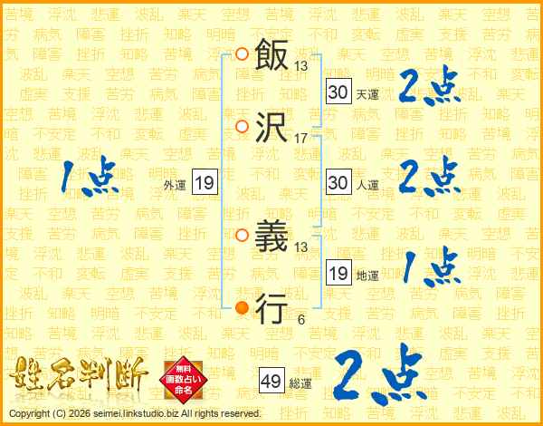 飯沢義行さんの人運は30画の2点!