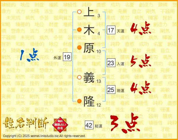 上(3画)木(4画)原(10画) 義(13画)隆(12画)