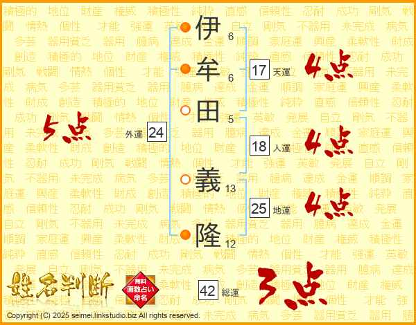 伊牟田義隆さんの地運は25画の4点!