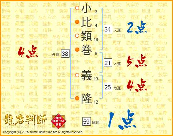 小比類巻義隆さんの天運は34画の2点!
