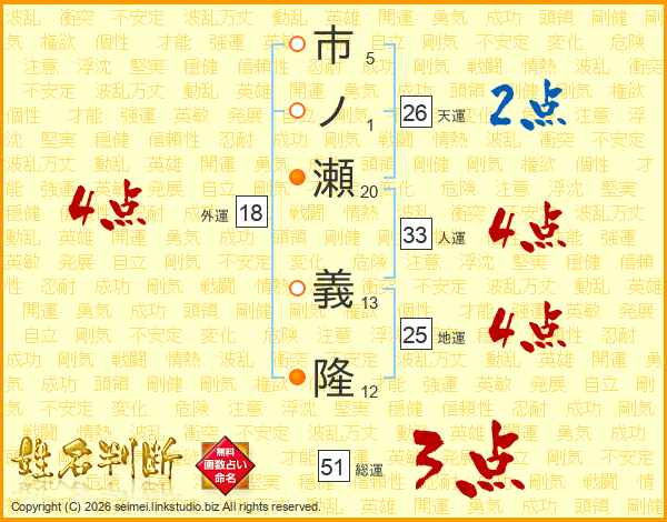 市ノ瀬義隆さんの天運は26画の2点!