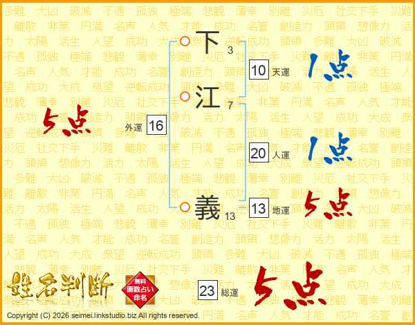 下江義さんの総運は23画の5点!