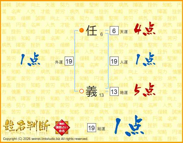 任義さんの総運は19画の1点!