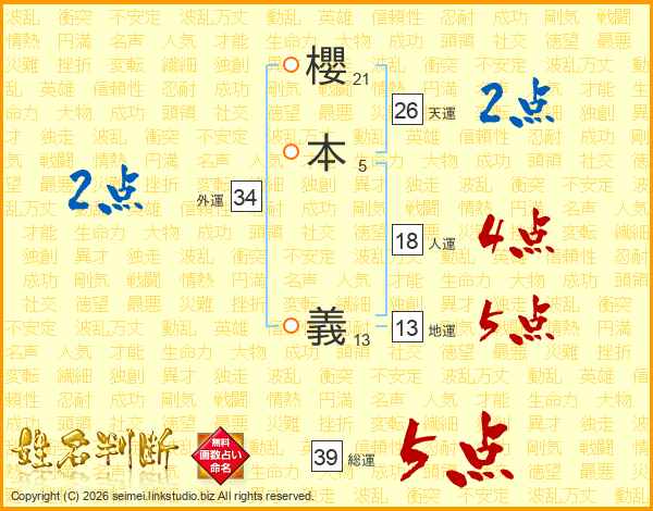 櫻本義さんの総運は39画の5点!