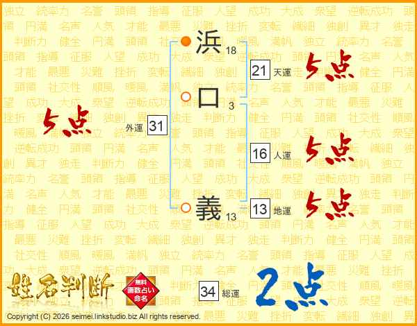 浜口義さんの天運は21画の5点!