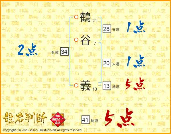 鶴谷義さんの総運は41画の5点!