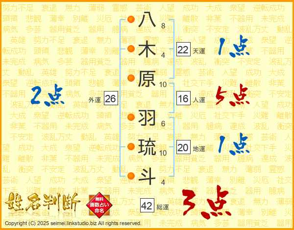 八木原羽琉斗さんの総運は42画の3点!